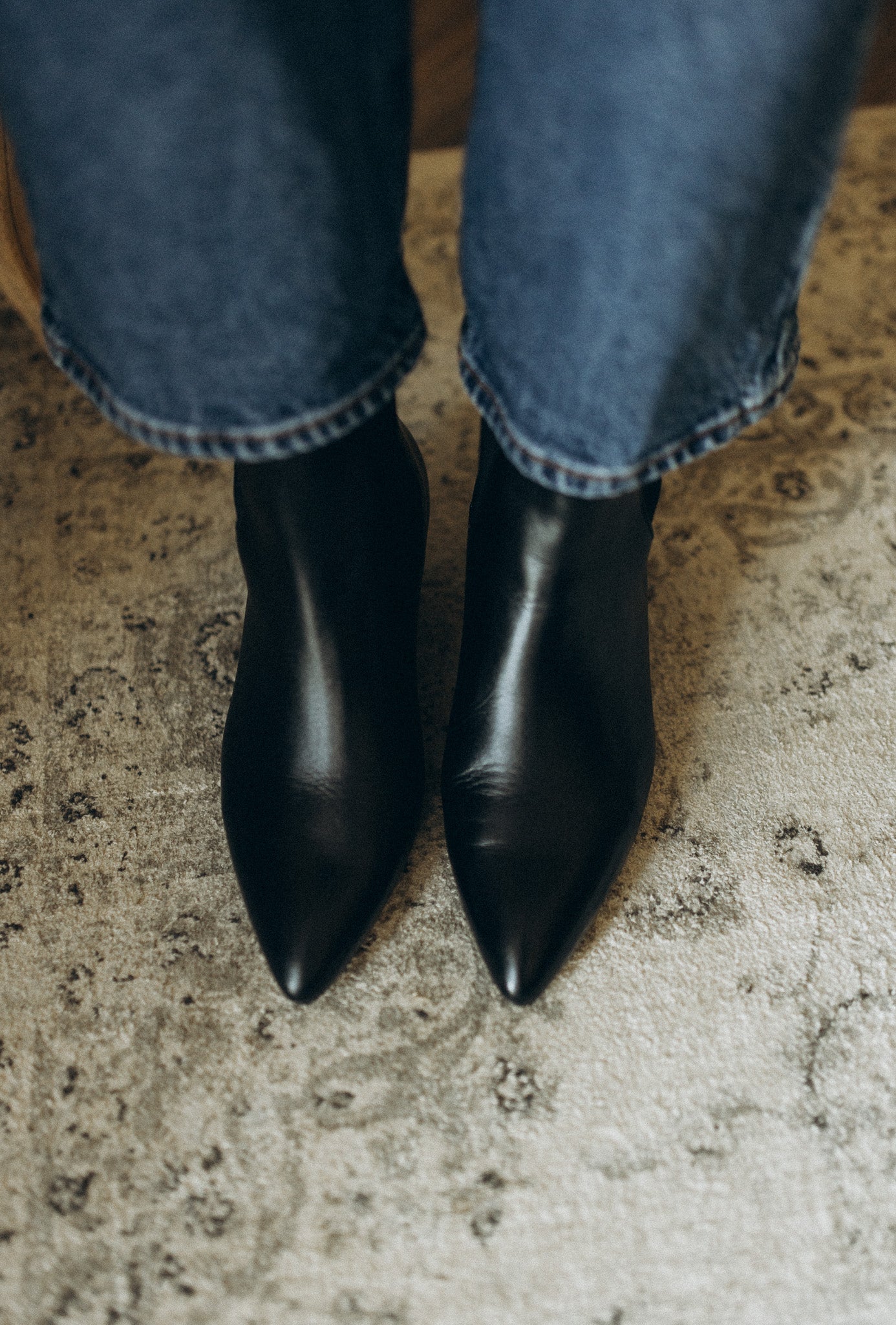 Wsuwane botki, to połączenie minimalistycznej formy i szlachetnego materiału. Współczesnego charakteru nadają im lekko szpiczaste noski, a folkowego - skośne oblekane obcasy. Cholewka przylega wokół kostki, pięknie komponując sie ze spodniami o szerokich nogawkach, lub z długimi sukienkami w towarzystwie czarnych rajstop.