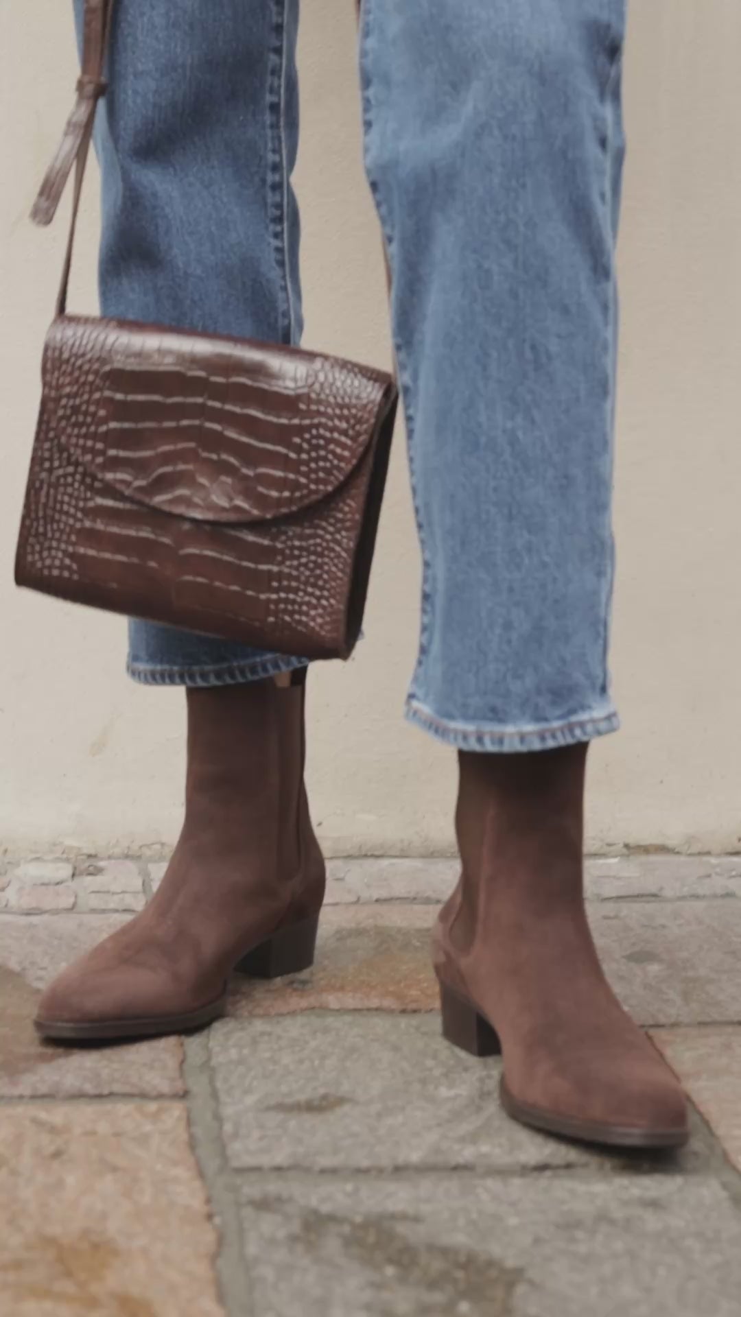 • wierzch: skóra naturalna welurowa, czekoladowy brąz