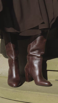 Wykonane w całości z naturalnej skóry, mają luźniejszy krój w kostce i pod kolanem, dzięki czemu subtelnie otulają nogę, zachowując swobodę i lekkość.