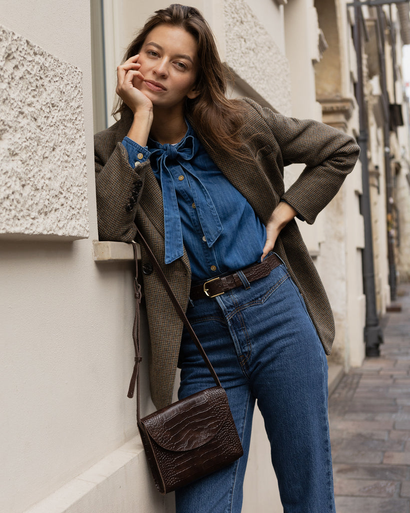 Subtelny połysk, faktura krokodyla, głęboka barwa gorzkiej czekolady, każdy pasek jest małym manifestem rzemiosła.