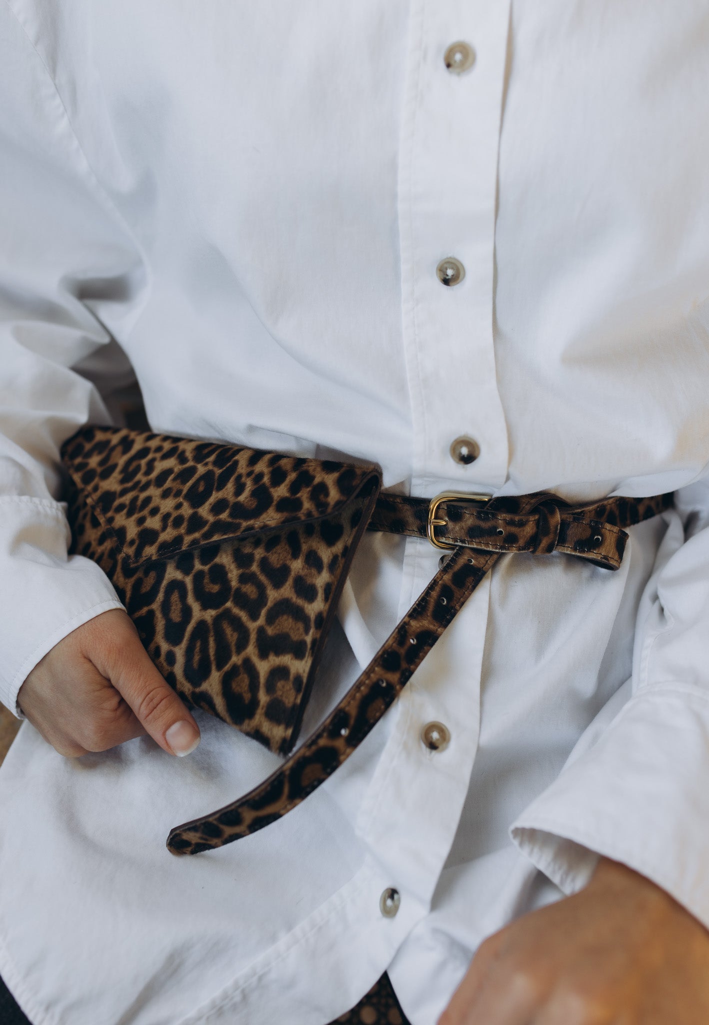 Nowa wersja kopertówki została wykonana ze szlachetnej skóry cielęcej z włosiem i naniesionym punktowo wzorem pantery.