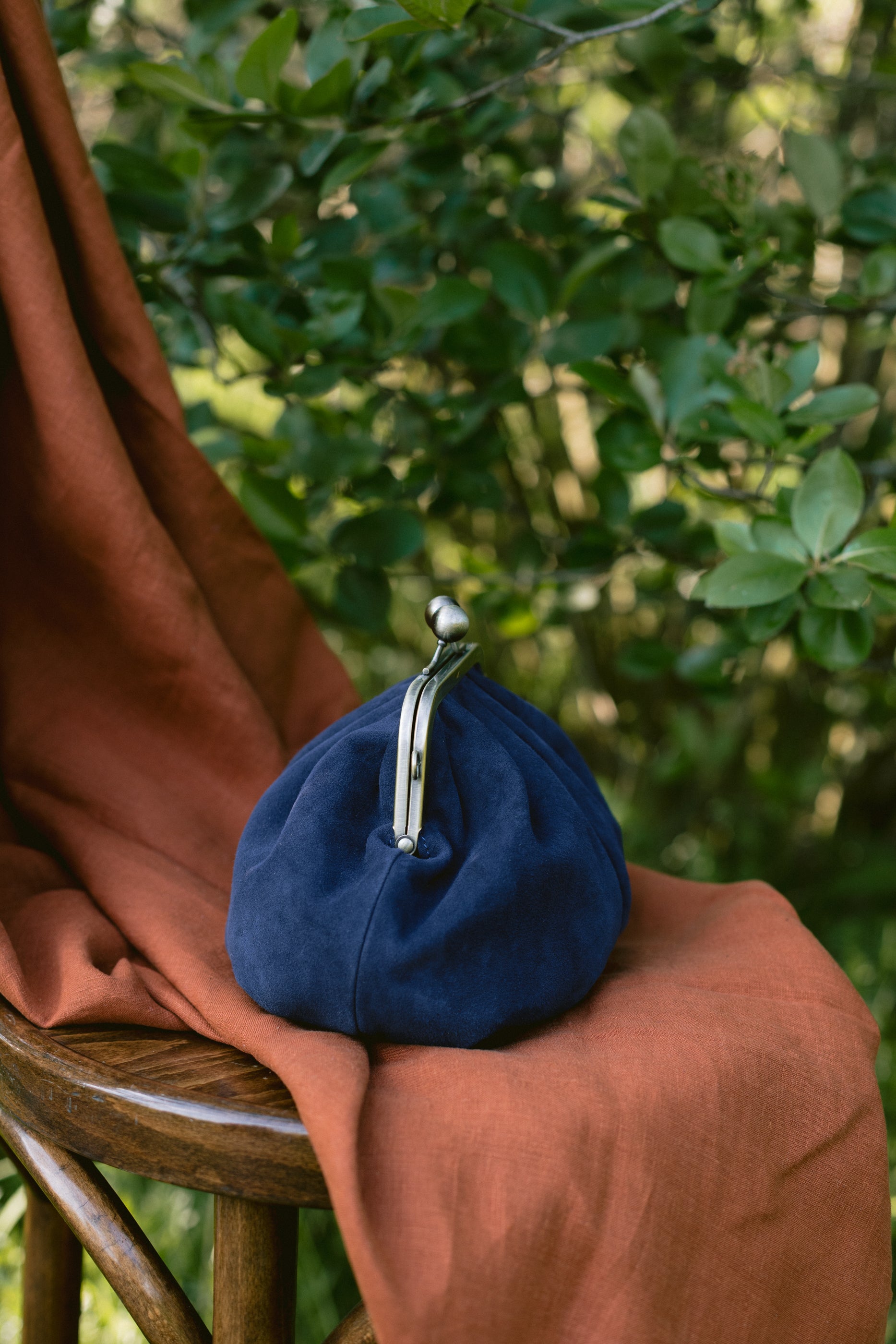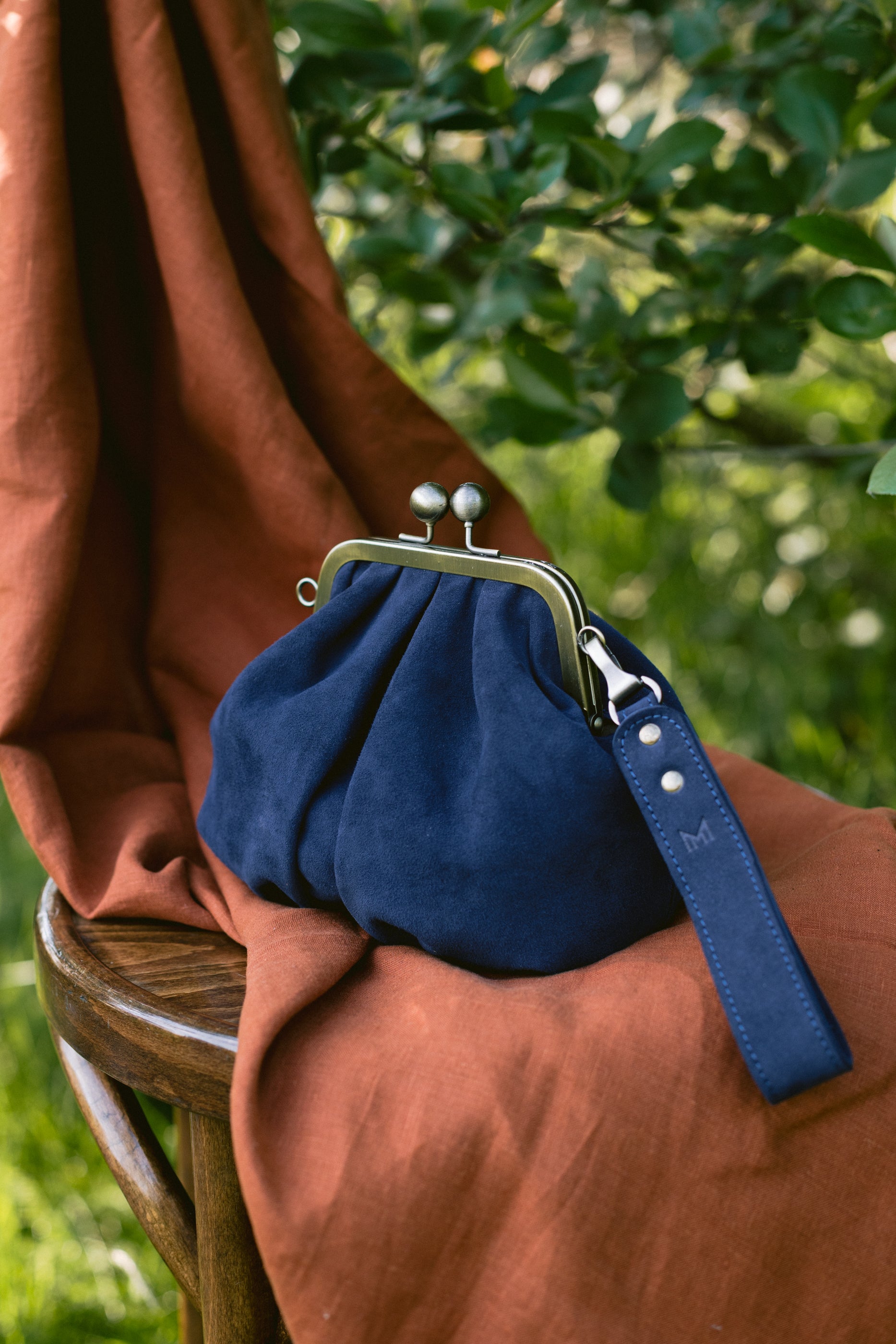 - Naturalna, granatowa skóra zamszowa