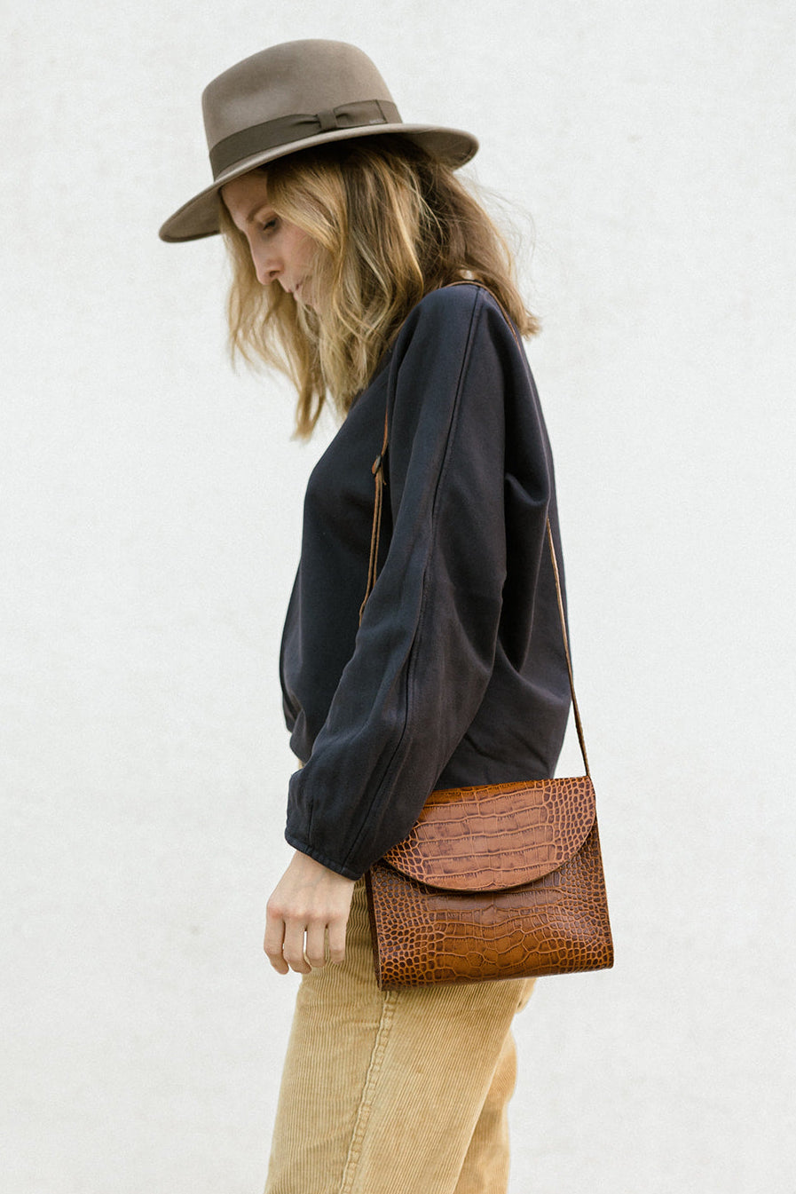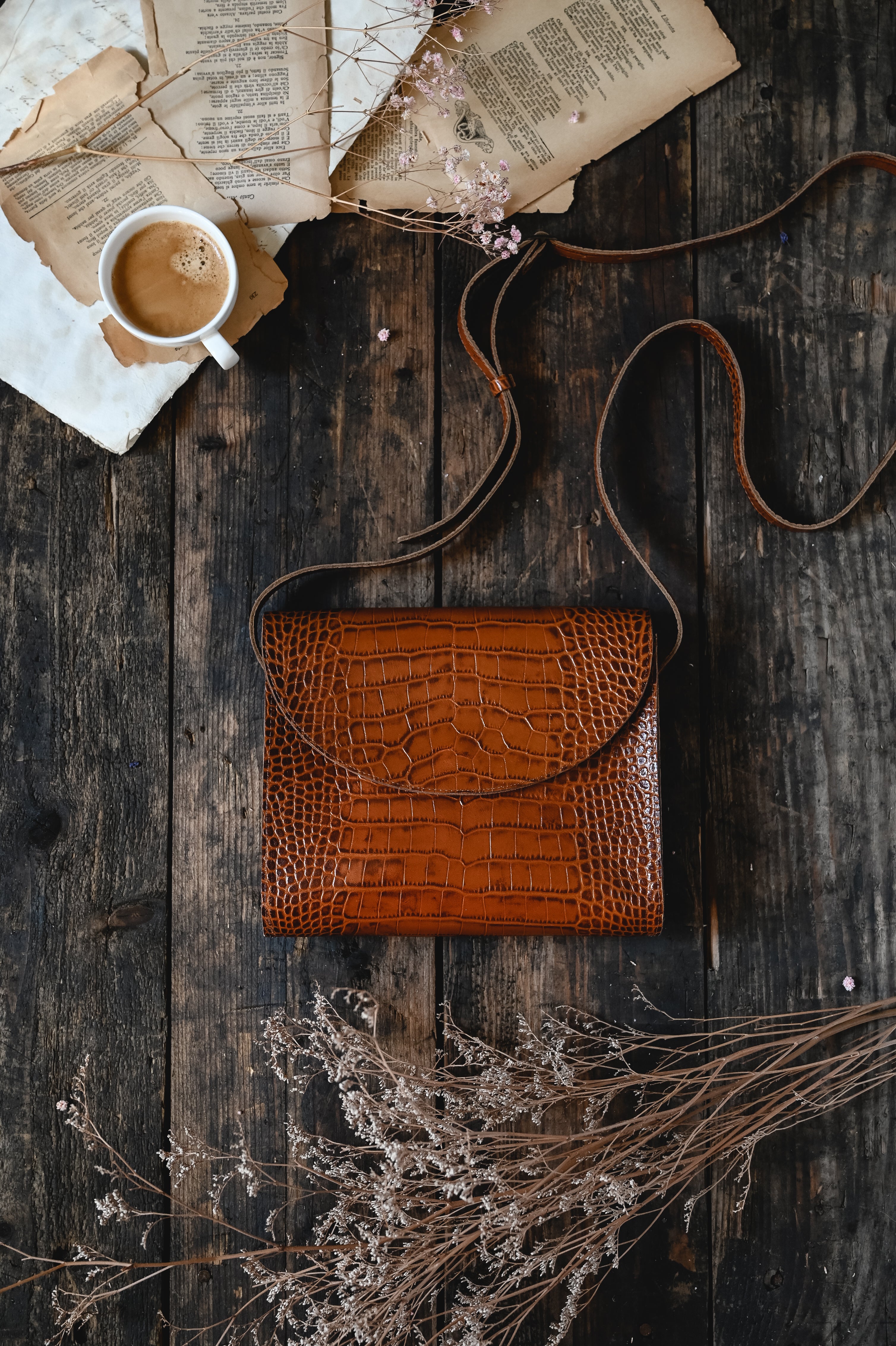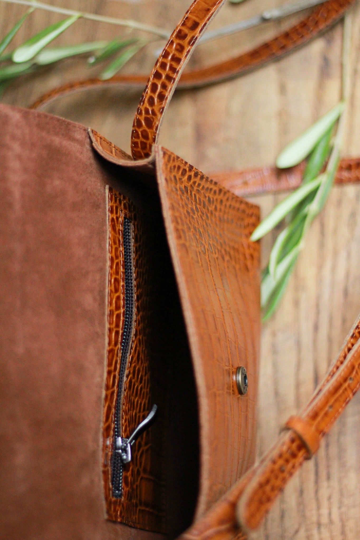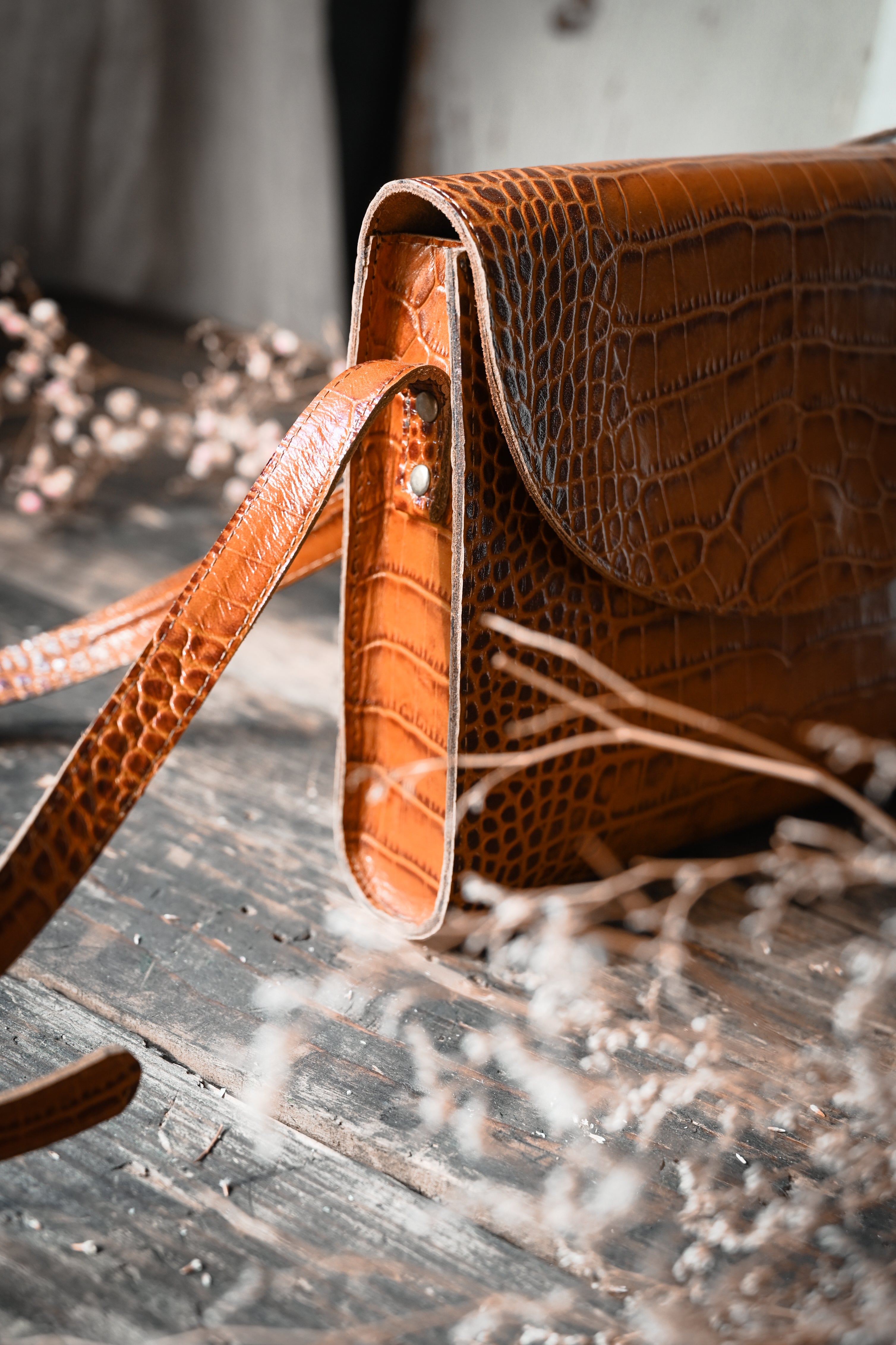 Torba listonoszka brąz krokodyl