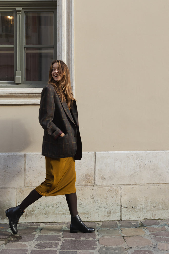 Każdy element został precyzyjnie dobrany: lekko skośne, stabilne i subtelne obcasy, nadające lekkości i nostalgicznego charakteru; bawełniane woskowane sznurówki; wygodny owalny kształt przodów; wysokość cholewki sięgająca nieco ponad kostki.